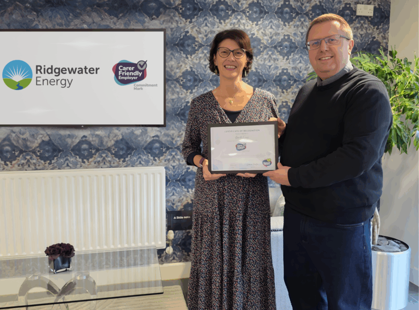 Forward Carers is delighted to present Ridgewater Energy with our Carer Friendly Employer Commitment Mark, recognising the organisation’s commitment to creating a supportive, inclusive workplace for employees who also have unpaid caring responsibilities.