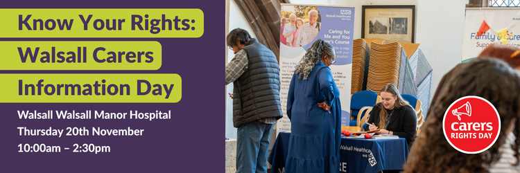 Join us this Carers Rights Day at Walsall Manor Hospital to discover the rights and support available to unpaid carers, parent carers, and family carers.